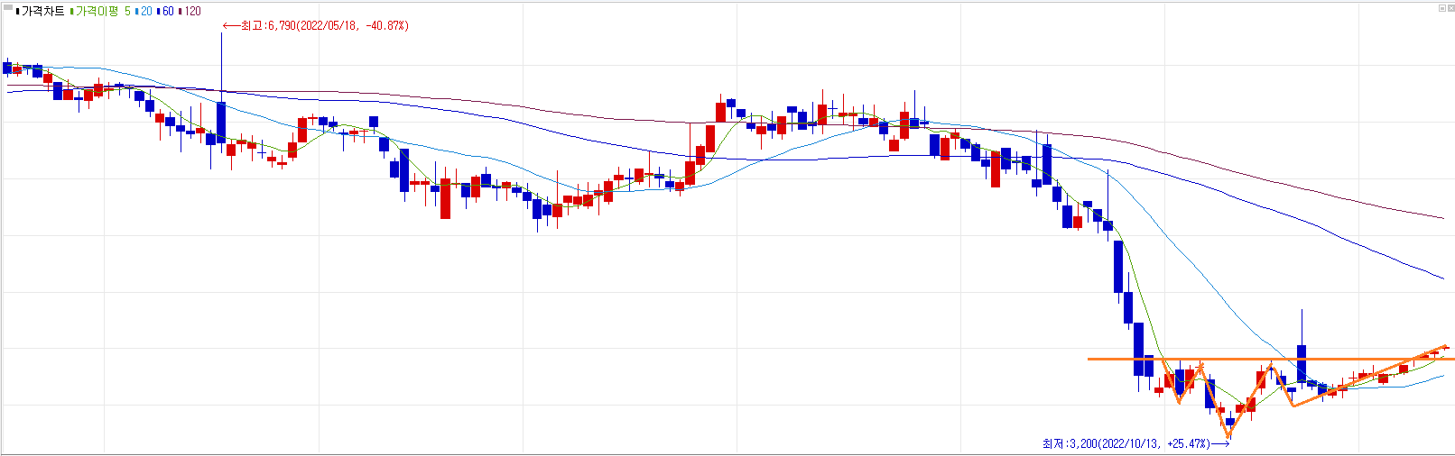 아래는 상승을 기대할 수 있는 역헤더숄도가 나왔습니다.