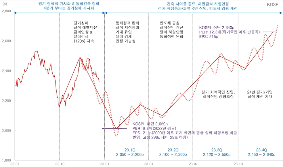 1-1. '23년 하반기 경기 턴어라운드 가능성이 높음', 주가는 선행 하기 때문에 23년 1분기 부터 반등 시작, 평균 2분기 선행