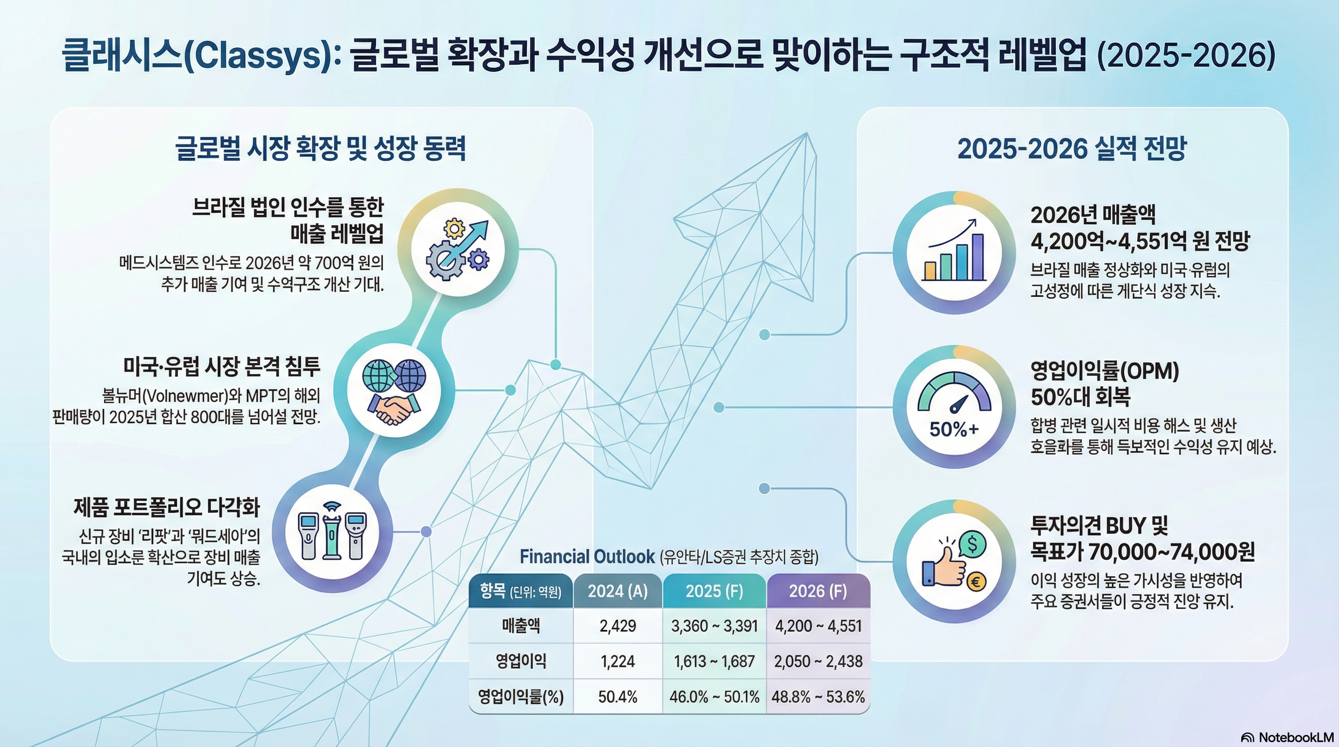 클래시스의 2024년 및 2025년 성과는 단순한 외형 성장을 넘어, 글로벌 에스테틱 플랫폼으로서의 지위를 확고히 하는 과정으로 평가한다. 특히 2025년 가이던스 달성 가시성은 매우 높은 수준이며, 이는 2026년 대규모 레벨업을 위한 견고한 토대가 될 전망이다.