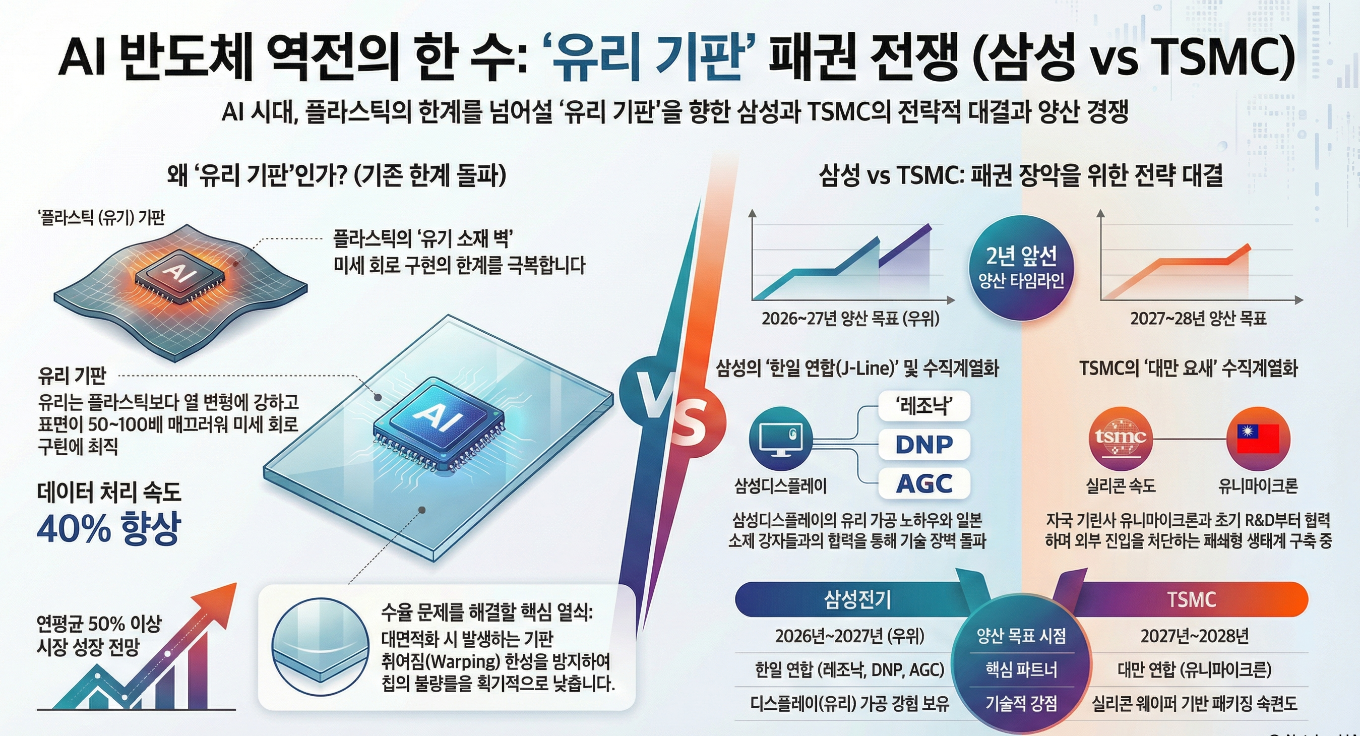 반도체 패권의 새 국면: 삼성전자와 TSMC의 유리 기판(Glass Substrate) 상용화 전략 심층 분석 보고서