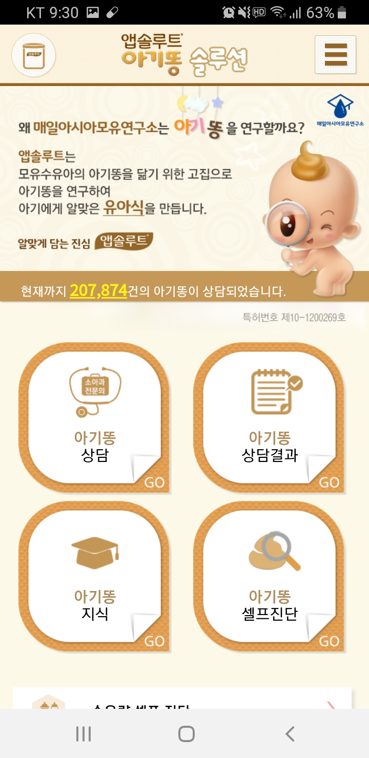 아기의 변을 찍어서 어플에 상담 신청하면, 진단 결과를 보내줍니다.