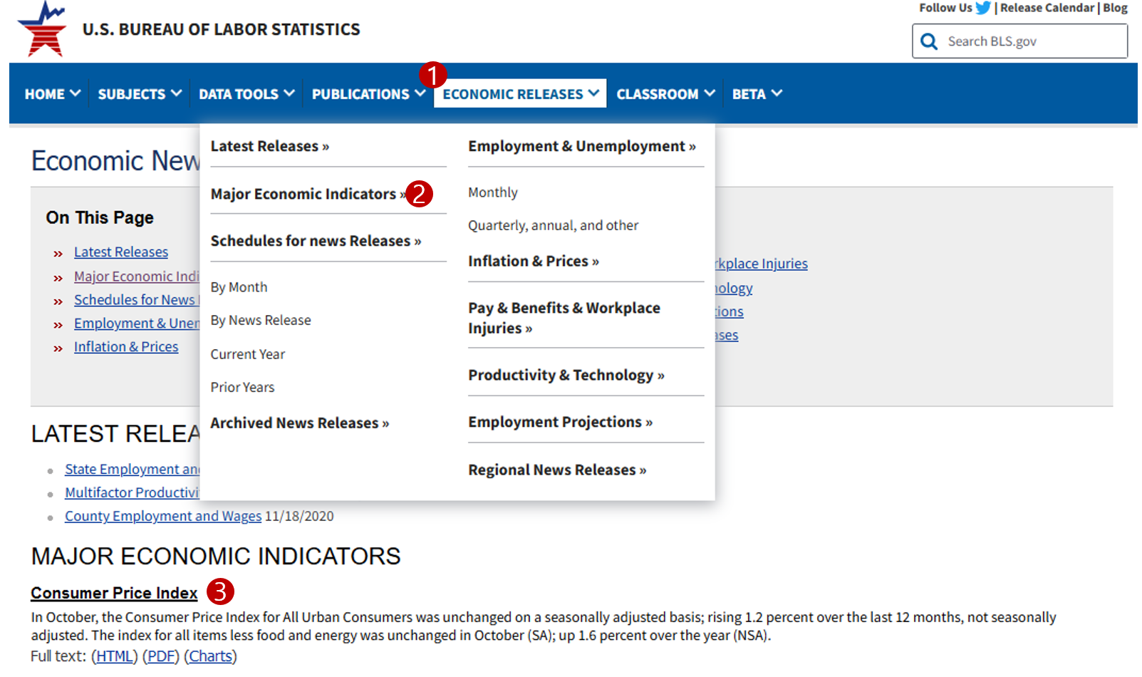 아래 미국 소비자물가 지수를 확인할 수 있는 노동통계국 사이트 입니다.