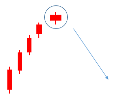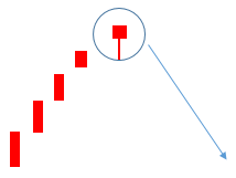 반대로 꼬리가 위로 길다면 매도세가 강하며, 고점에서 크게 하락이 되었다는 것임